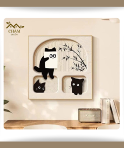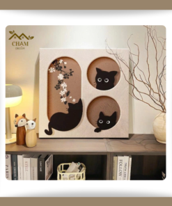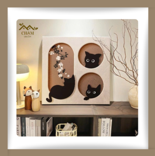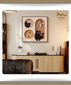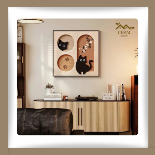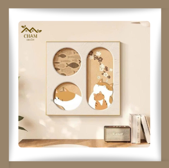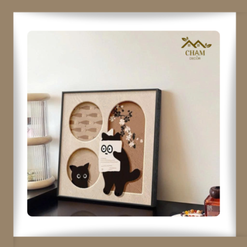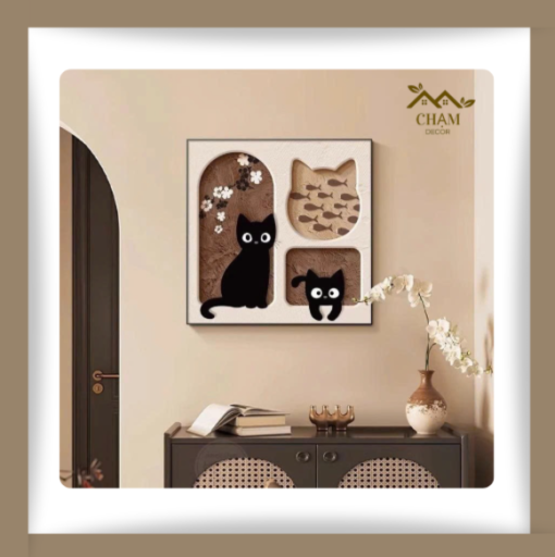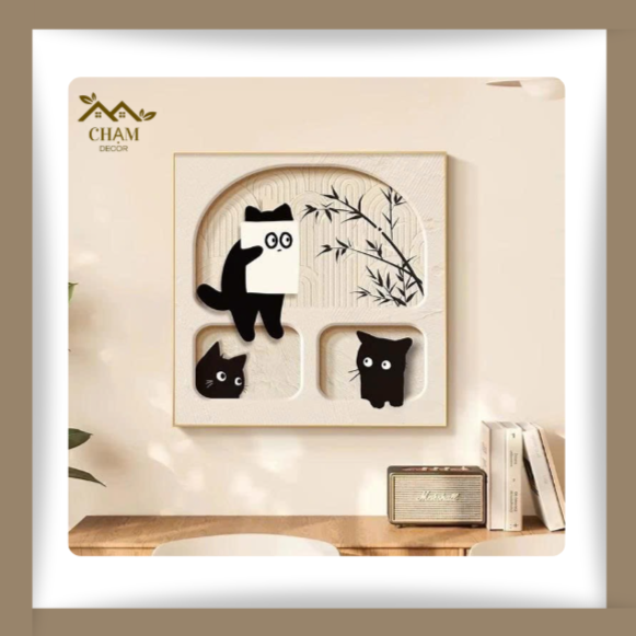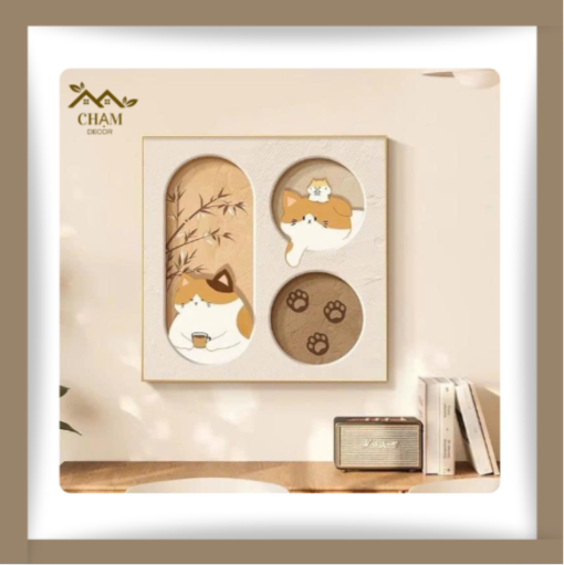 Tranh Treo Tường 3D Ổ Mèo Xinh Xắn – Tranh Canvas Vuông Chủ Đề Động Vật Đáng Yêu NN026